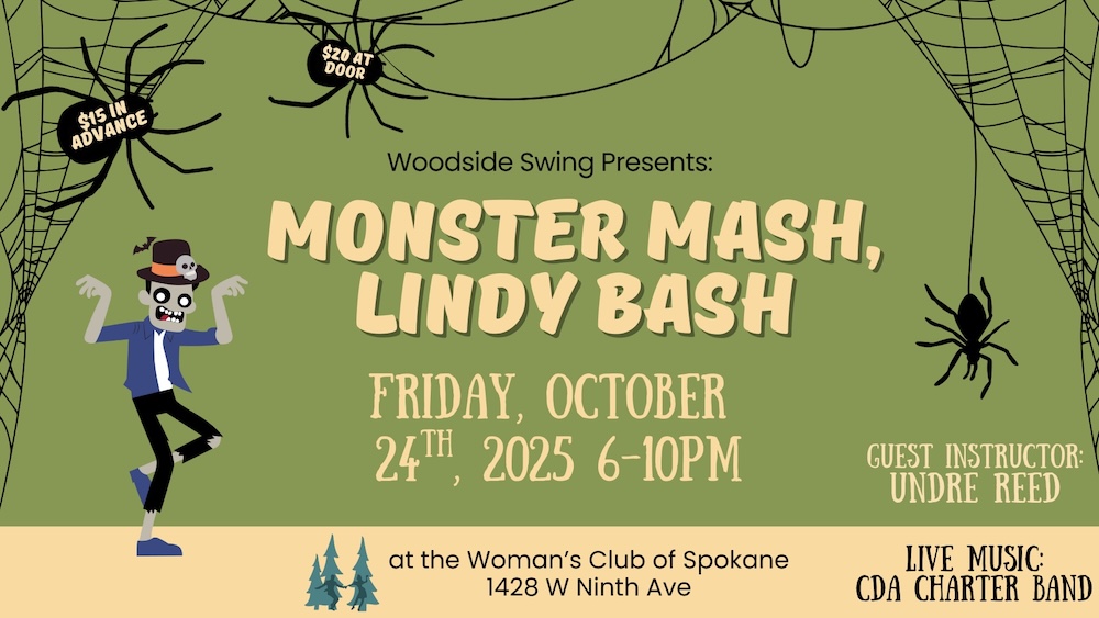 Woodside Swing provides vintage swing dance opportunities in Spokane, WA. We teach Lindy Hop, Charleston, Collegiate Shag and Balboa. Connect with us on Facebook or Instagram, and check our calendar below for specific event details. Or register online for classes or events.